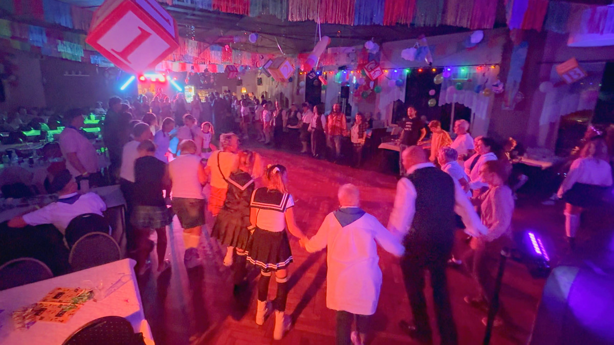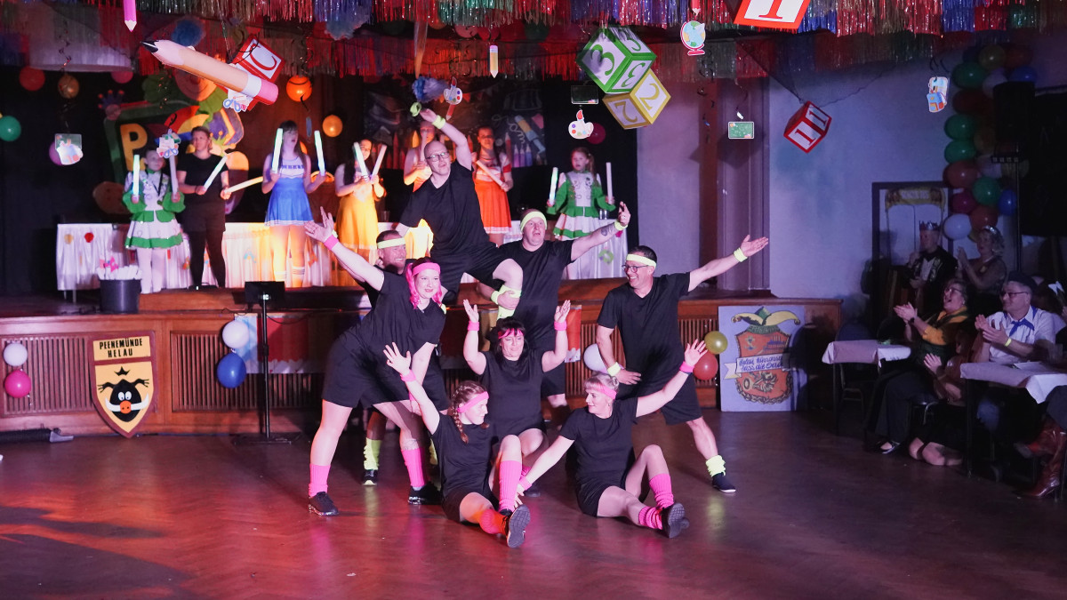 Gegen 22.30 Uhr zelebrierte die „reifere Jugend“ (Carola, Kerstin, Josy, Danny, Leo, Frösi und Maik) unterstützt von den großen Funken eine „Fröhliche Sportstunde“ – eine echt tolle Show, die körperlich schon eine echte Herausforderung war. Und als Zugabe spielt der DJ auch noch die lange Version voll aus – Auaaa!! Als Belohnung gab’s einen tosenden Beifall.