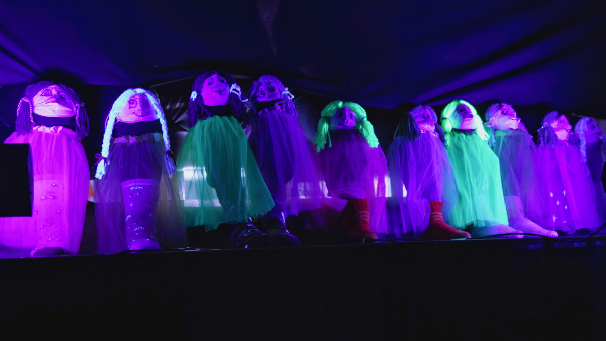 „Gut gelaunt Nachsitzen“ hieß es kurz nach 23.00 Uhr. Die Ü60er (Gabi, Franka, Regina, Rainer und Peter) hatten ihren Knien ein Gesicht gegeben, die Unterschenkel in Schale geschmissen und sich sitzenderweise hinter einem schwarzem Vorhang versteckt. Dann gab’s einen sogenannten Knie-Tanz zu verschiedenen Melodien – „Gute Laune“, Radetzky-Marsch und „We will rock you“.