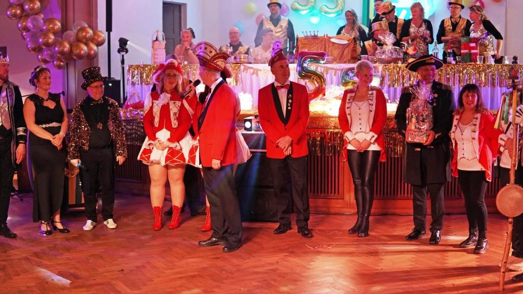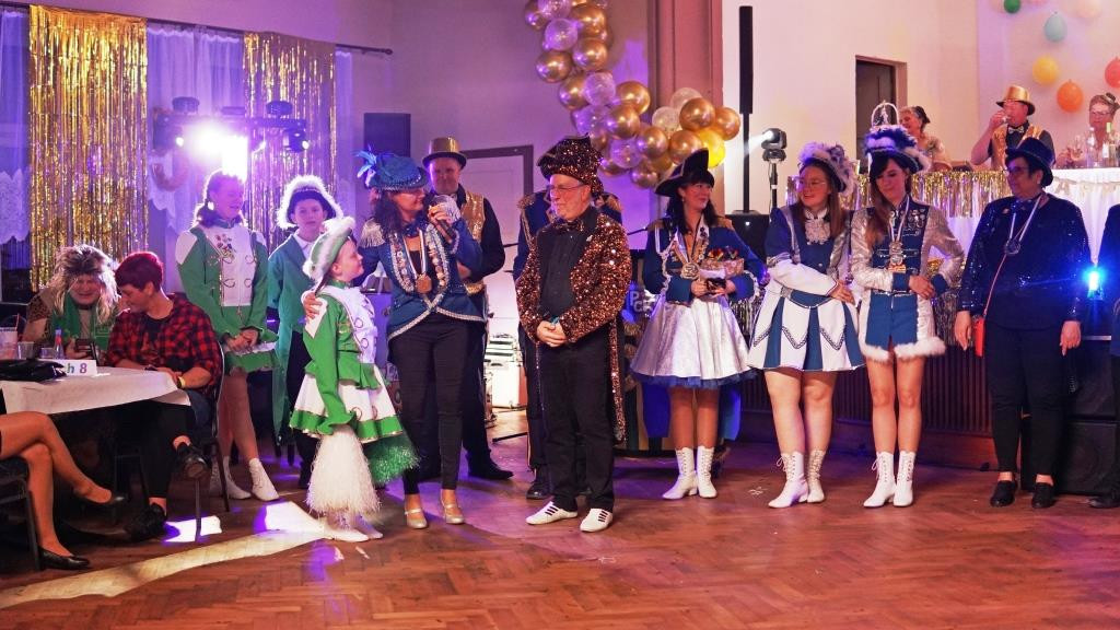 Mit den Veranstaltungen am 15. und 16. März endete eine außergewöhnlich lange Karnevalssaison. Nach 134 Tagen – 40 Tage länger als die kalendarische Karnevalszeit – endete unsere 55. Jubiläumssaison. Dazu war der Saal der „Zwiebel“ festlich mit goldener Deko geschmückt. Insgesamt rund 320 Gäste an zwei Tagen freuten sich über unser buntes Programm. Am 15. März waren zehn befreundete Karnevalsvereine der Insel sowie aus Wolgast und Hohendorf anwesend, die mit liebevoll gestalteten Geschenken und besten Wünschen gratulierten.