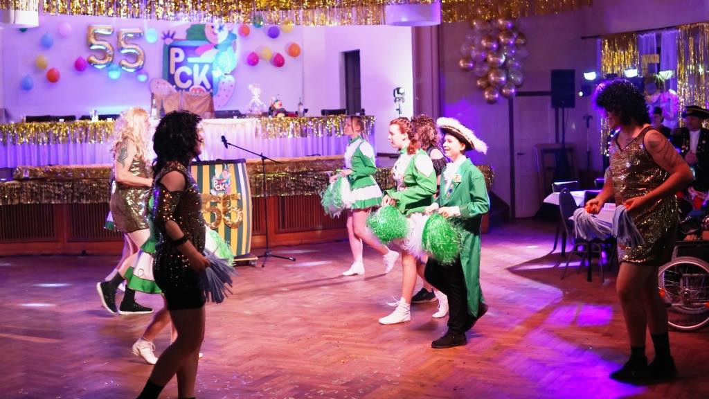Eingeladen waren auch Förderer und Sponsoren sowie Ehemalige und Stammgäste (Ganz links unter dem Text das Foto des PCK mit Ehemaligen). Gleich zum Auftakt des Programms bewies der PCK seinen Einfallsreichtum. Weil gegenwärtig die Funkengarde mit sechs Kindern und Jugendlichen sehr klein ist, wurde diese von vier erwachsenen Männern in goldenen Kleidern beim Tanzen unterstützt. Dabei machten Danny Skibbe, Thomas Szostak, Maik Chust und Patric Dahlke eine durchaus gute Figur und erheiterten das Publikum.