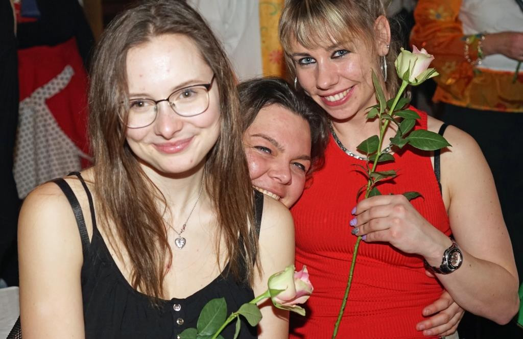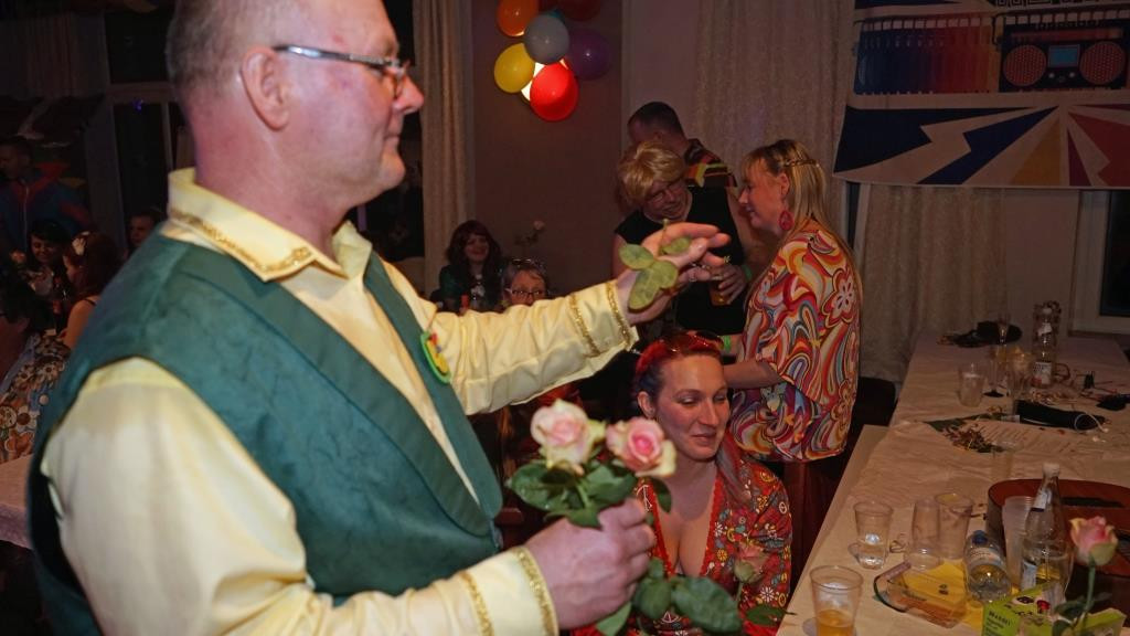 Zum anderen erhielt jede Frau pünktlich um Mitternacht zu Beginn des Frauentages eine langstielige Rose, überreicht von den Männern des Karnevals Clubs Ückeritz (KCÜ) und des PCK. Die Ückeritzer hatten sich dazu noch etwas ganz Besonderes einfallen lassen. Sven Groth parodierte Jürgen von der Lippes „Blumenmann“ und hatte auch einige als Bienen verkleidete Männer des KCÜ dabei. Den glücklichen Gesichtern der Frauen auf den Fotos ist nichts mehr hinzuzufügen…