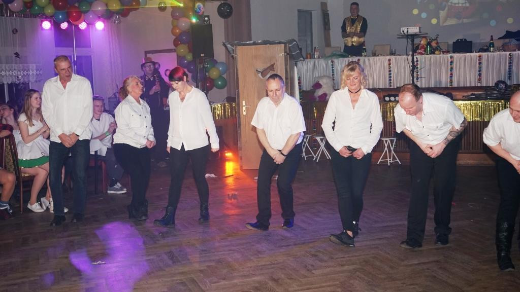 Schließlich wagten sich einige PCK-Tänzer erstmals an einen Irish-Dance-Beitrag heran, verpackt in einer Geschichte um einen Zeitgenossen, der dringend „mal musste“, das Klo-Häuschen jedoch besetzt war, und dann noch zehn andere kamen, die sich vor Blasenschmerz schon den Schritt hielten und wild umhertanzten. In der Ankündigung hieß es: Das unfreiwillige Erlernen eines anspruchsvollen Tanzes. Eigentlich war eine gewisse Synchronität während des Beitrages vorgesehen - aber bei einer vermeintlich vollen Blase ging das sprichwörtlich „in die Hose“. Na ja, das Publikum hatte bei den Verrenkungen und Grimassen der Akteure trotzdem seinen Spaß. Übrigens – das Klo-Häuschen kam in bewährter Art und Weise aus der Werkstatt von Thomas Kawitz!