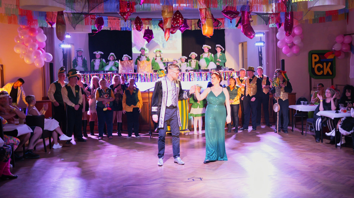 Zur Begrüßung hatten Emma und Präsi Peter mal wieder einen lustigen Schlagabtausch passend zum Frauentag vorbereitet. Danach begeisterte unser Prinzenpaar Melli und Jens das Publikum mit ihrem Eröffnungstanz.